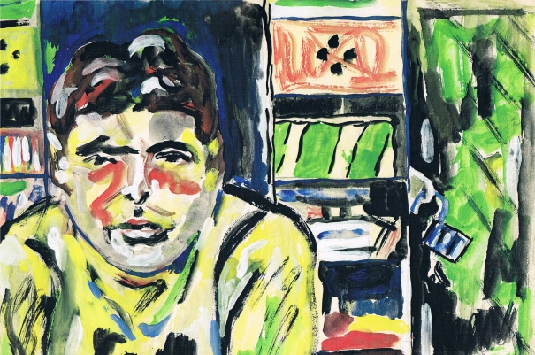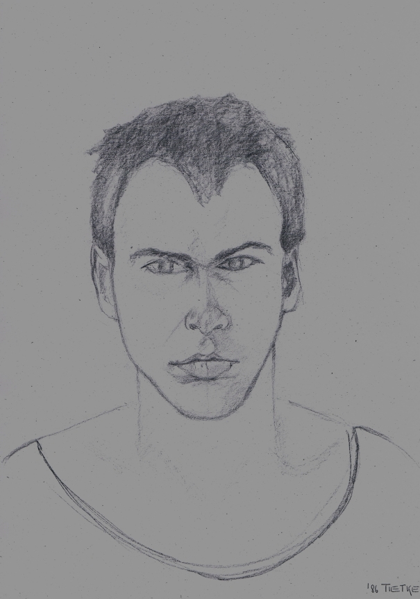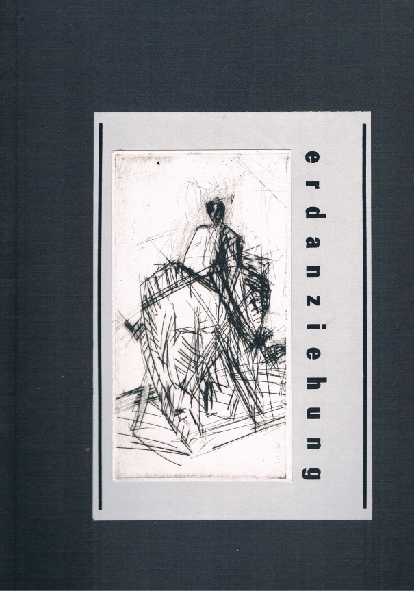 Bei diesem Zusammensein habe ich u. a. die Kurzgeschichte "Erdanziehung" gelesen, die Matthias Kistmacher illustrierte und 1989 als Künstlerbuch mit Graphiken zum Druck brachte. Es wurden 60 Exemplare gedruckt und durchnummeriert. Vier Seiten Text und drei ganzseitige Grafiken plus die Grafik auf dem Titelcover. (1989)