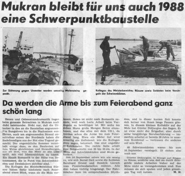 Ein Artikel aus der Zeitung der Mukraner Baustelle. (1. Oktober 1987, 26. Jahrgang, Nr. 19) Es gibt ja äußerst wenige Artikel, wo zumindestnes arbeitende Soldaten vorkommen, wenn sie sich auch nicht getraut haben von Bausoldaten zu sprechen.